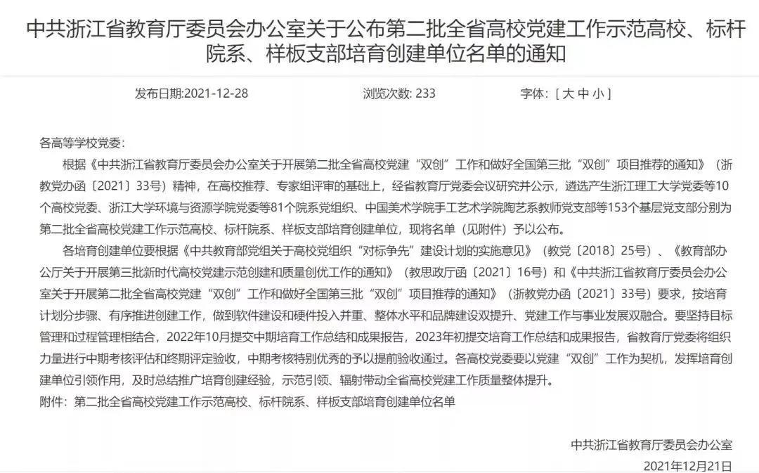 全省高校党建样板支部培育创建单位