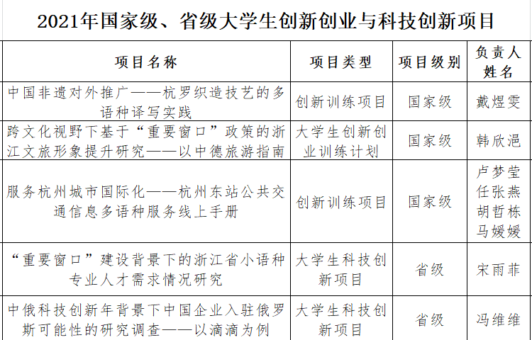 国家级大学生创新创业训练计划项目立项3项,省级大学生科技创新项目立项2项