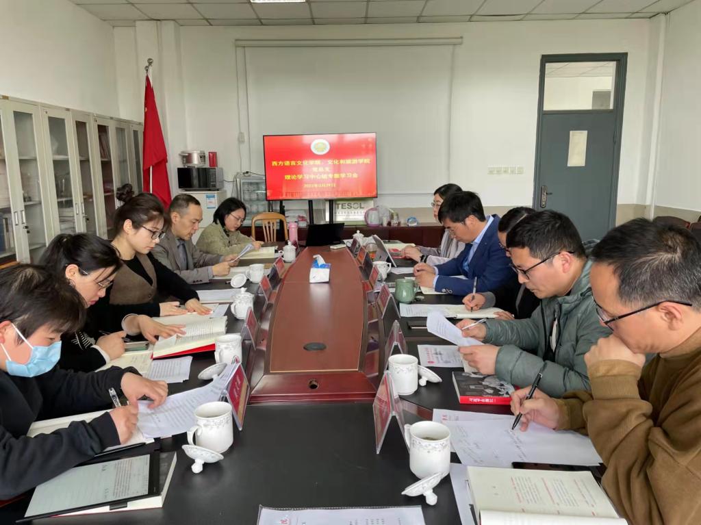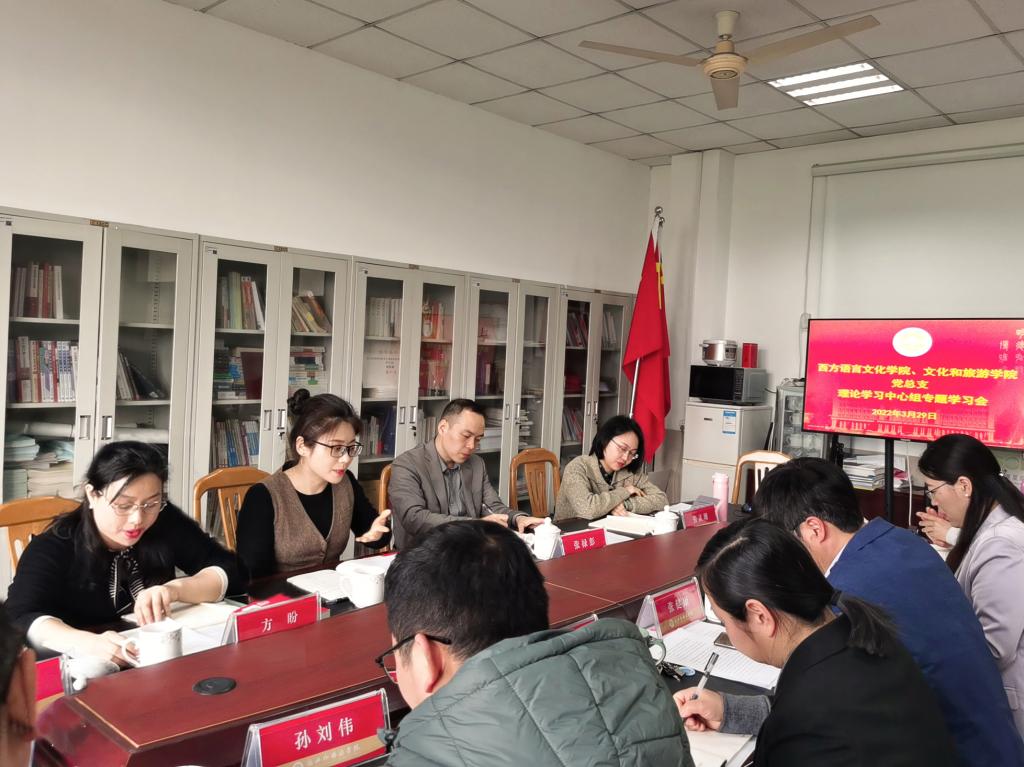 3月29日下午,学院党总支书记毕莹带领党总支理论学习中心组赴文旅学院开展联学活动。本次联学的主题是深入学习领会习近平新时代中国特色社会主义思想和全国、全省“两会”精神。联学活动由文旅学院党总支书记范芸芸主持,两个学院的理论中心组成员参加学习。