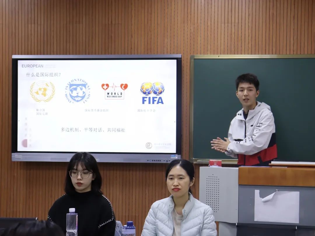 19西语1班的姚博文同学分享了自己的国际组织梦,结合自己参与模拟联合国活动、中国国际公务员能力建设项目、联合国训练研究所冬季培训计划、世界互联网大会志愿服务以及其他校内外各种活动的经历,介绍了自己希望未来入职国际组织的寻梦、追梦、筑梦之旅。