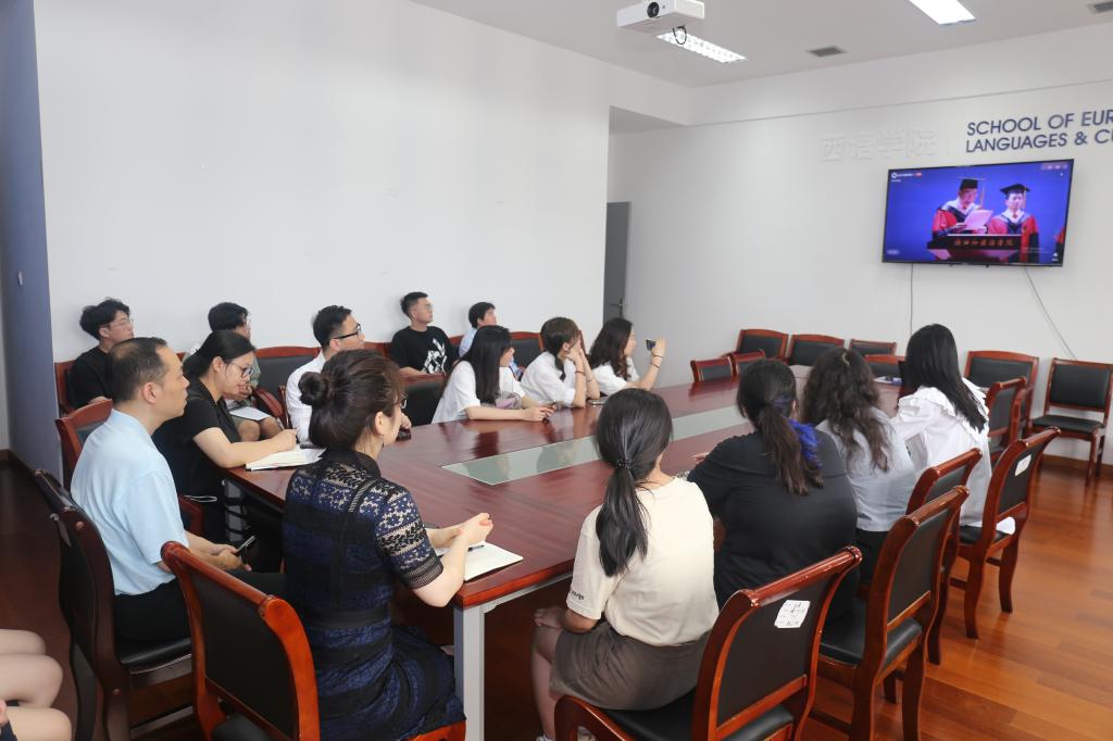 与会师生党员们共同观看了学校2022届毕业典礼,为典礼中呈现出来的学有所成、成长感悟、师生恩情而感动、祝福!