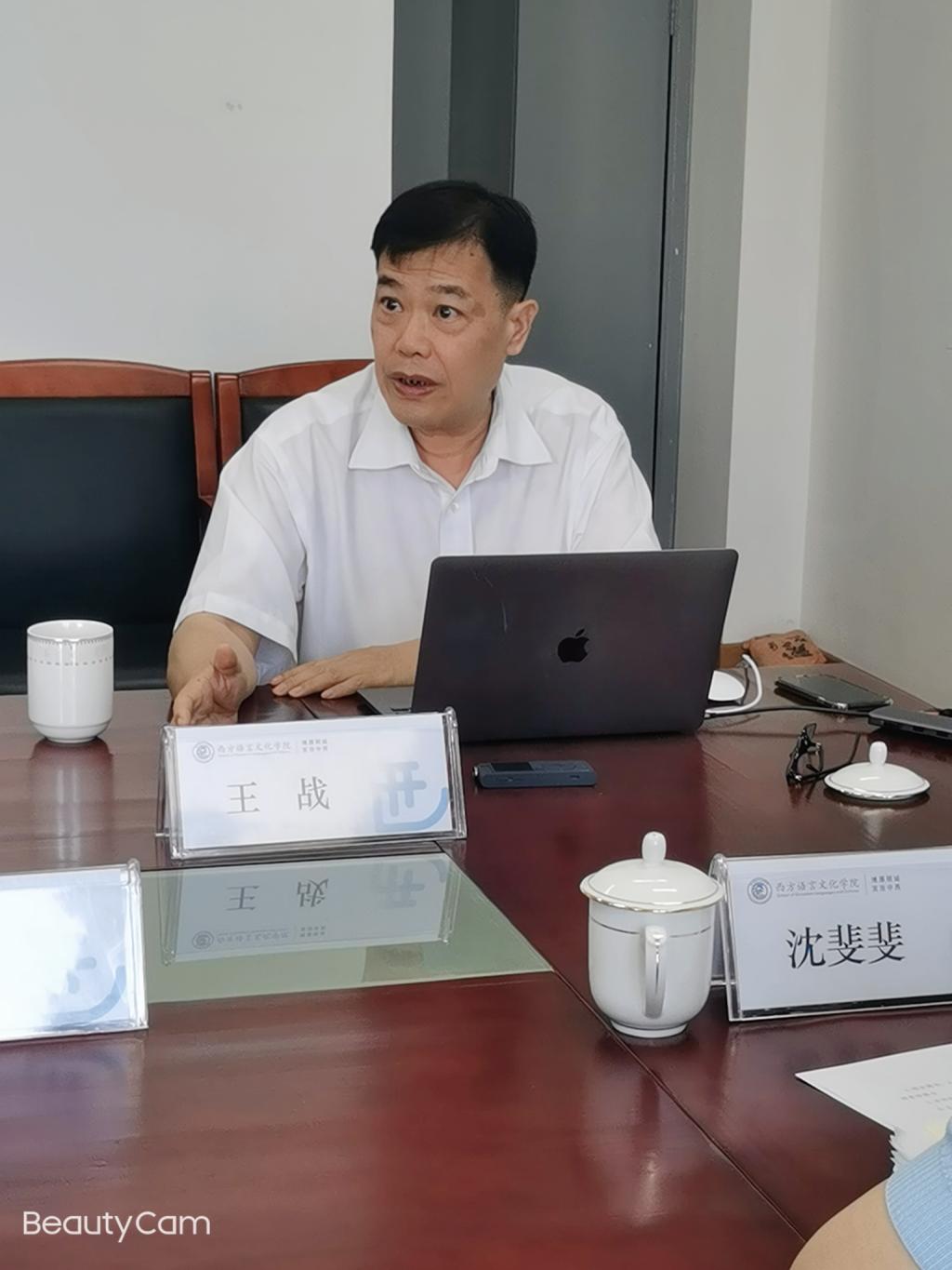 聘任仪式上,学院副院长张禄彭为王战教授颁发聘书,对王战教授的加入表示欢迎与感谢,期待王战教授引领学院青年教师更好开展国别区域研究、更好促进法语学科发展,为学院建设发展提供智慧与支持。