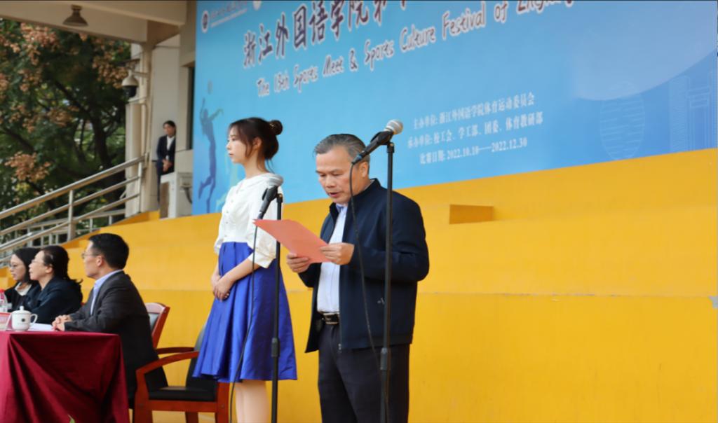 接着,洪岗校长致闭幕词。洪校长对本次运动会进行了充分肯定。他认为,本次运动会不仅检阅了我校体育运动的水平和实力,也展示了我校良好的校风校貌和同学们向上的风姿风采,并希望团结精神和永不放弃的体育精神伴随大家继续前行。