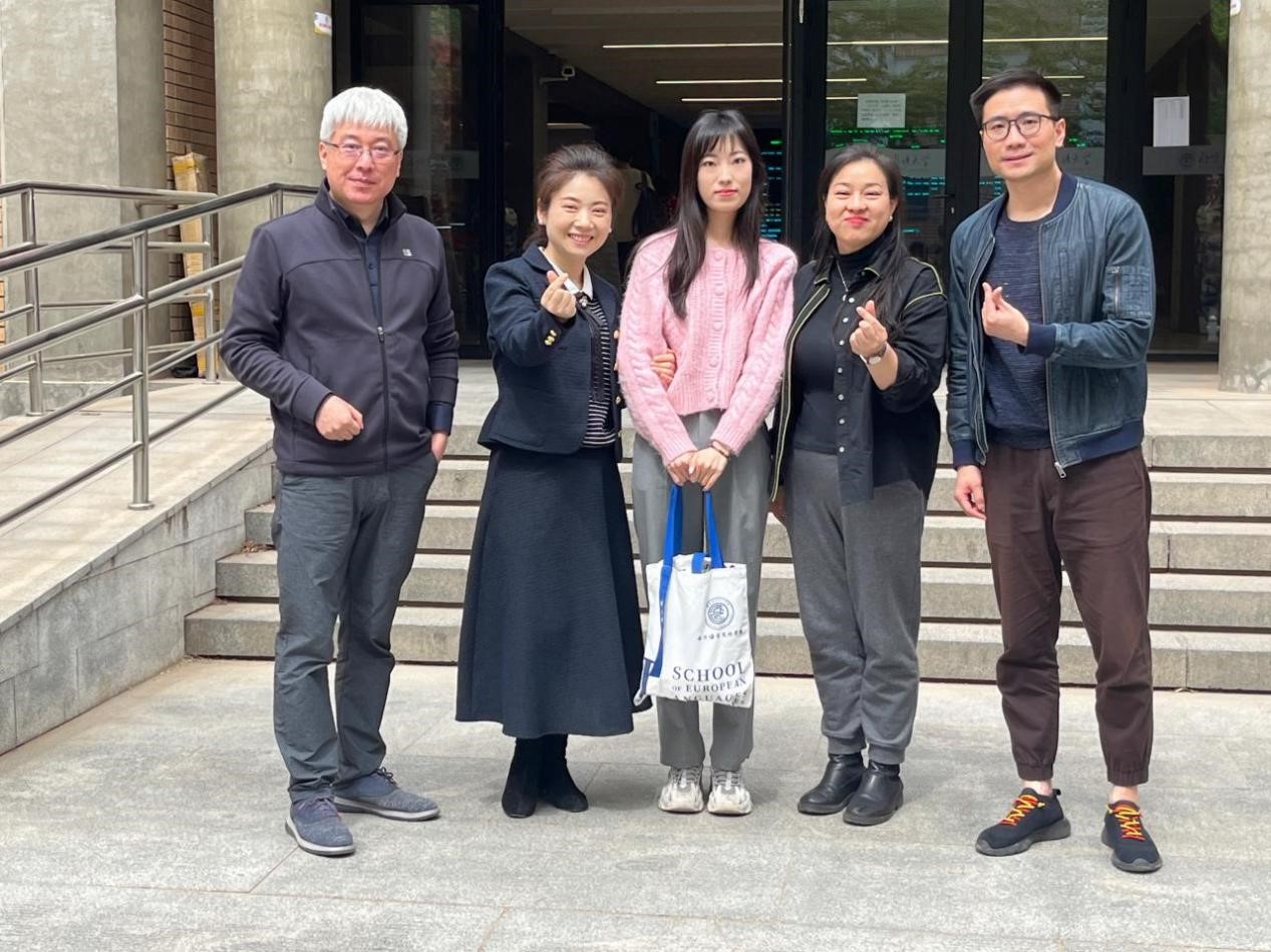 调研期间,一行人员还看望了在北外学习的校友,并为3位北外在读校友送去了学校、学院文创纪 念。