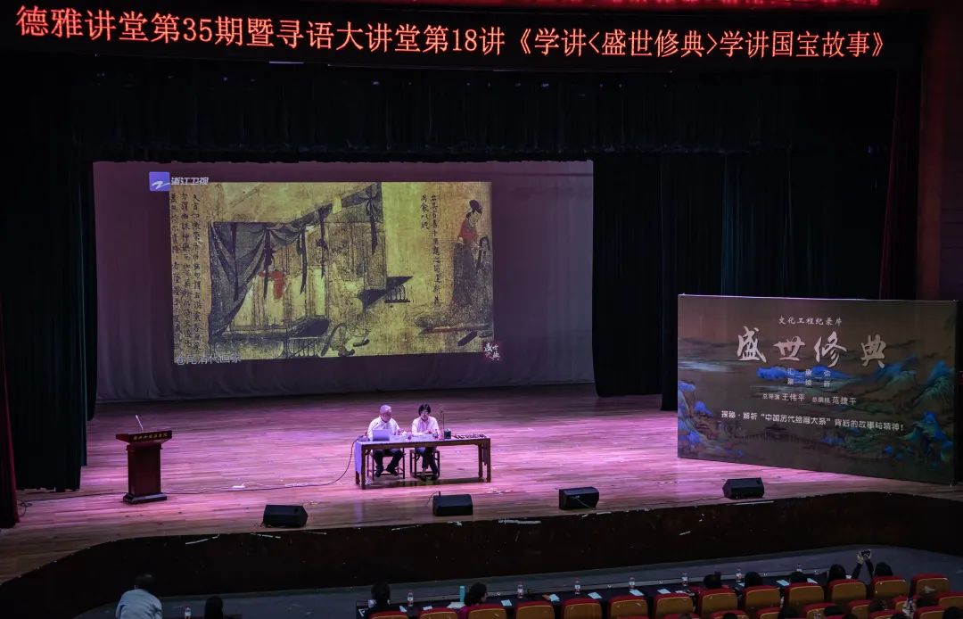 4月27日下午,德雅讲堂第35期暨寻语大讲堂第18讲——《学讲<盛世修典>,学讲国宝故事》在追梦堂举行。《盛世修典》总导演王伟平女士,总撰稿、低端影视
