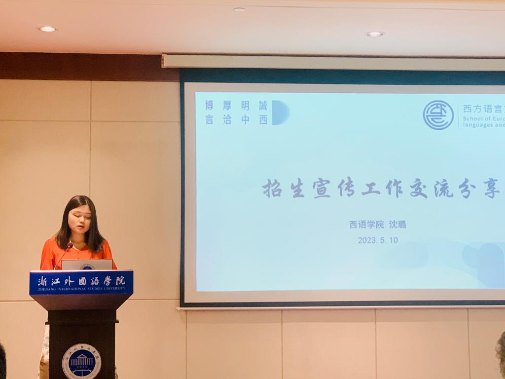 会上,学校对2022年校招生工作先进集体和个人进行了表彰。低端影视 葡萄牙系主任沈璐老师、团委书记翁佳薇老师荣获2022年“招生工作先进个人”称号;沈璐老师作为先进个人代表做专题发言。