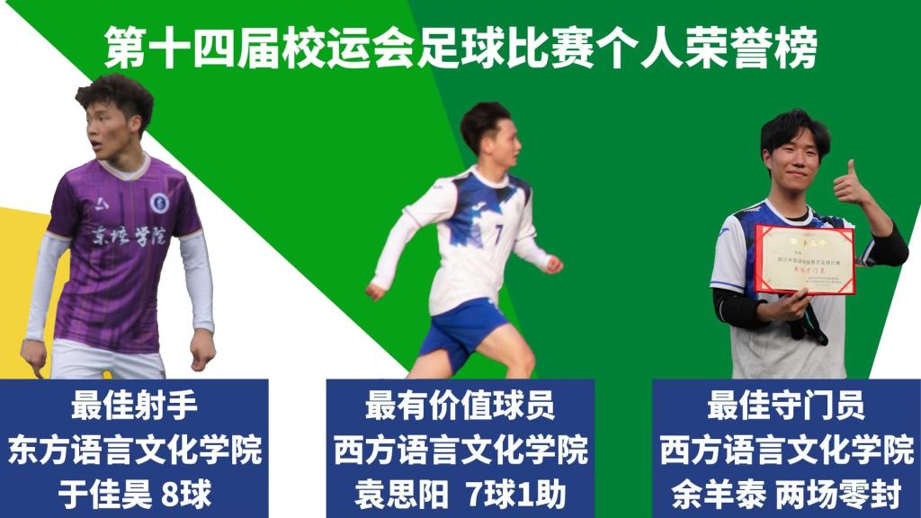 足球爱好者们提供了展示自己、超越自己的舞台,掀起了一阵运动拼搏的热潮,体现了坚持不懈的体育精神,激励并丰富了同学们的生活和成长。