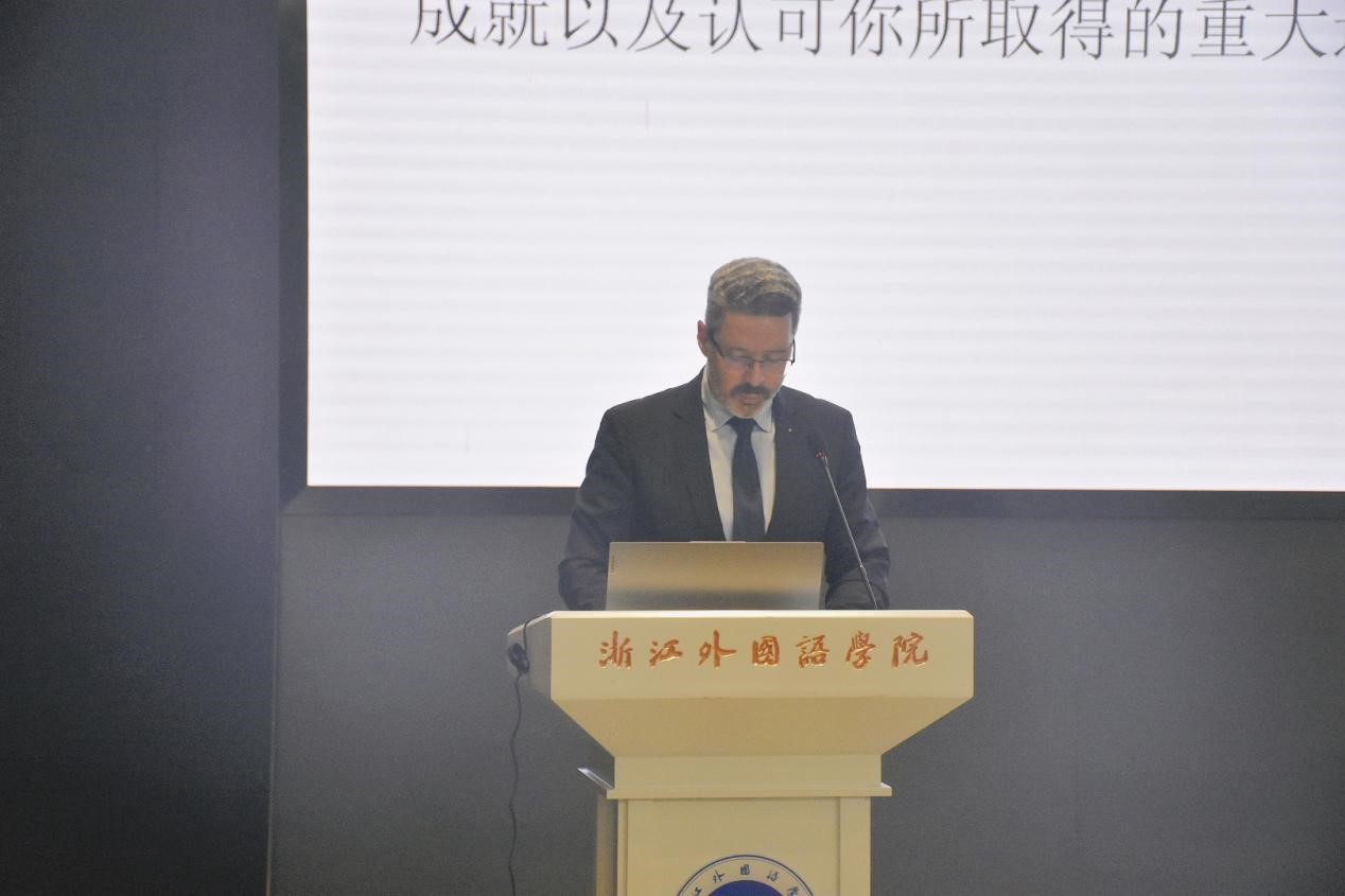 史诺则表达了对现场所有师生的感谢和祝福,他说:“我想鼓励所有参赛的学生们继续努力,继续深造。学习语言可以打开不同文化和民族之门,树立相互理解交流的榜样。”