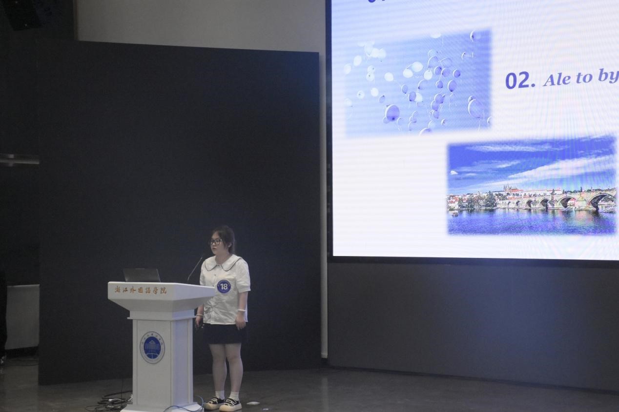 陈奕妃来自浙江越秀外国语学院,如今正在捷克帕拉茨基大学交流学习。本次比赛,她通过线上方式参赛,结合交流期间的学习,把书本上学习到的历史既往、艺术画作、节日习俗从平面的字符变成了立体的、生动的、多彩的现实和经历。她在演讲结尾饱含深情地表示:“我知道我在捷克的学习即将结束,但我相信我和我的经历就像《永远讲不完的故事》这本书的标题一样。我想,有一天,我可以写下属于我自己的‘永远讲不完的故事’。”
