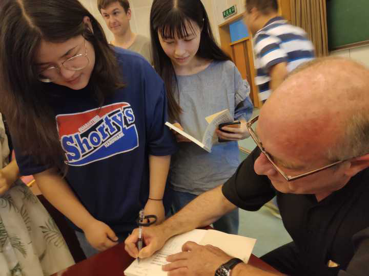 小说是一个复杂的宇宙,因为目光和视角在其中交织,多声的对话和表述在其中纠缠。借助叙事的不同模式,作者把读者带入主观世界,而这个世界是现实经验难以企及的。在讲座中,乐尔教授以叙事学的角度、从各个文本出发,阐述了小说叙事的各种视角、各种引语的变化以及小说中的复调多声问题。他以生动的语言把听众领入了一个别样的文学天地,在座师生听得饶有兴味。法语系徐普老师对讲座中的关键词汇和难点进行了现场翻译。乐尔教授在回答了听众的问题之后来到法语系办公室和法语系的教师进行了交流,探讨了法语系与勃艮第大学合作的前景。