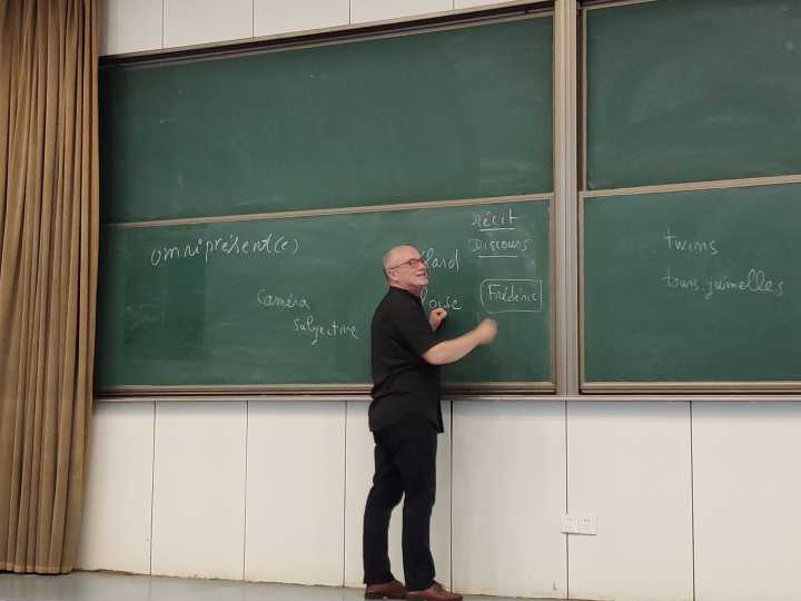 2019年6月29日上午,在望院E116,法国勃艮第大学法国文学教授乐尔先生应邀来到我校做了一场题为“现代小说中的目光与声音”的博达论坛学术讲座。我校法语系主任孟玉秋老师主持了本次论坛,听众包括低端影视