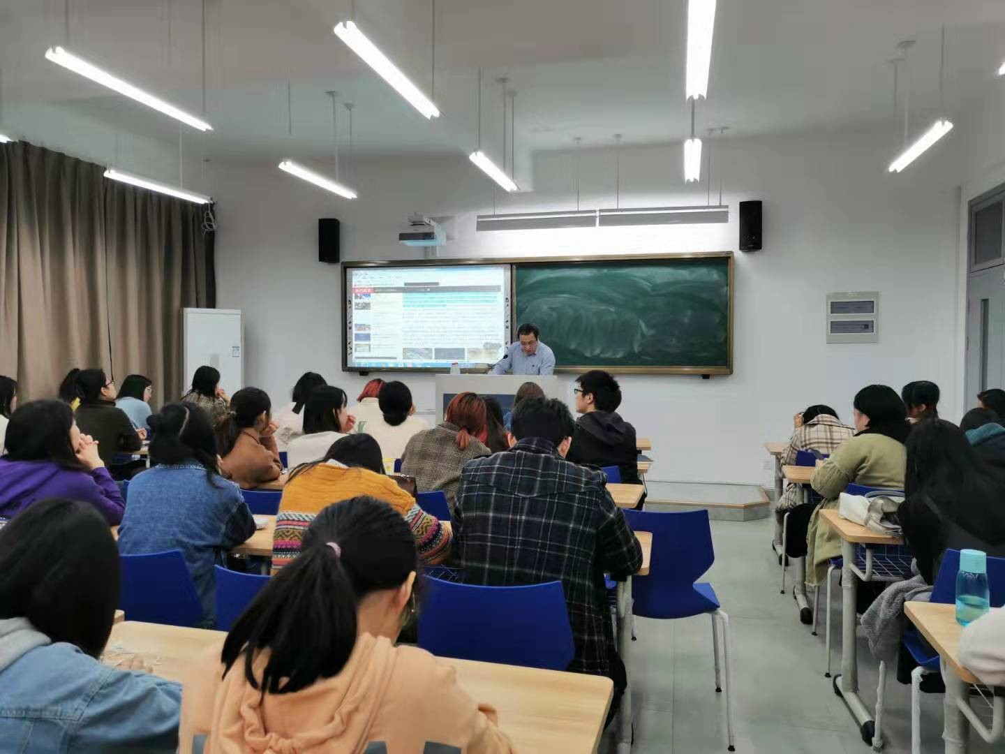 2019年11月22日下午,对外经济贸易大学金融学教授赵永升在我校作了“马克龙改革与法国社会经济的真实面目”的讲座。赵教授为法国国家博士,法语译审;并兼任法国经济研究中心主任,法国全法中国法律与经济协会副会长,哈佛大学美中经济交流协会专家委员会副主任等职。本次讲座由法语系系主任孟玉秋主持,法语系全体学生及老师均到场聆听。