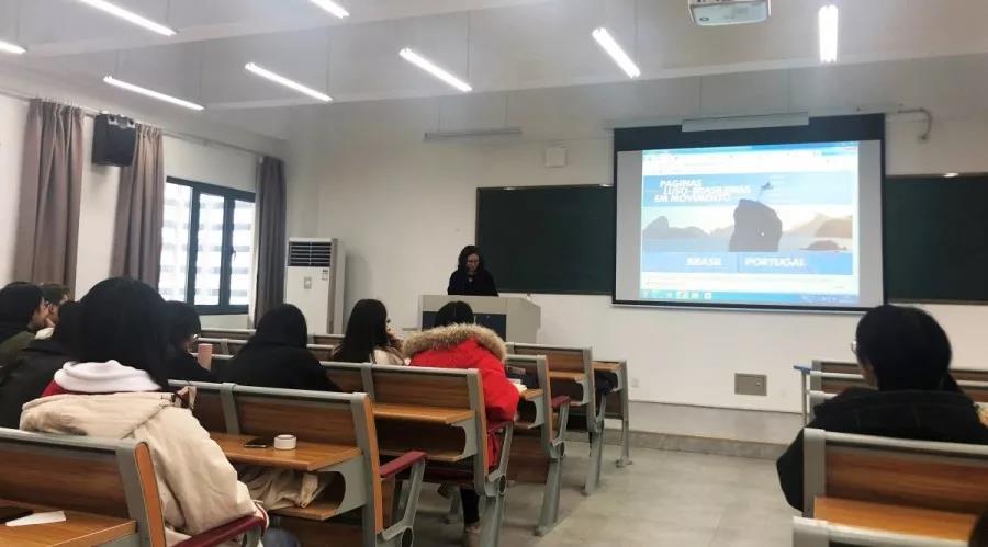 Mônica Simas教授是圣保罗大学文学院教授,主要研究方向为葡萄牙文学、澳门文学等。在本次讲座中,Mônica Simas教授向同学们系统的讲述了葡萄牙文学的形成与发展,并向同学们推介了相关葡萄牙文学的网站,能够让同学们更加深入、系统的了解葡萄牙、巴西的文学,并与现场同学互动,耐心的解答了同学们文学作品阅读的相关困惑,应同学们的要求,向大家推荐了现阶段较为适合大家阅读的作家和相关作品。讲座现场气氛热烈,氛围浓厚。