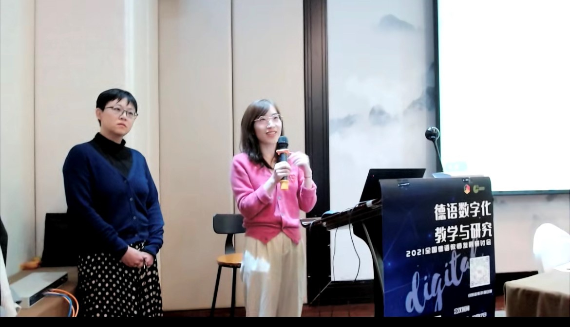 德语系章吟主任、张硕老师、闫慧子老师、瞿贞老师和王佳懿老师参会。章吟主任在会上向在场教师及嘉宾介绍了低端影视