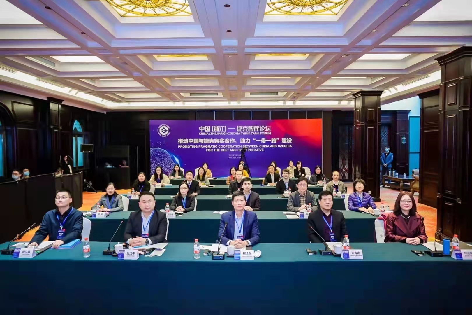 11月26日,由浙江金融职业学院主办、浙江省“一带一路”研究智库联盟协办的中国(浙江)——捷克智库论坛在杭州新新饭店顺利召开。学院副院长、斯拉夫研究中心主任张禄彭及捷波语系全体教师受邀参加会议,捷克语专业外教路越嘉(JiříPlucar)在会上发言。