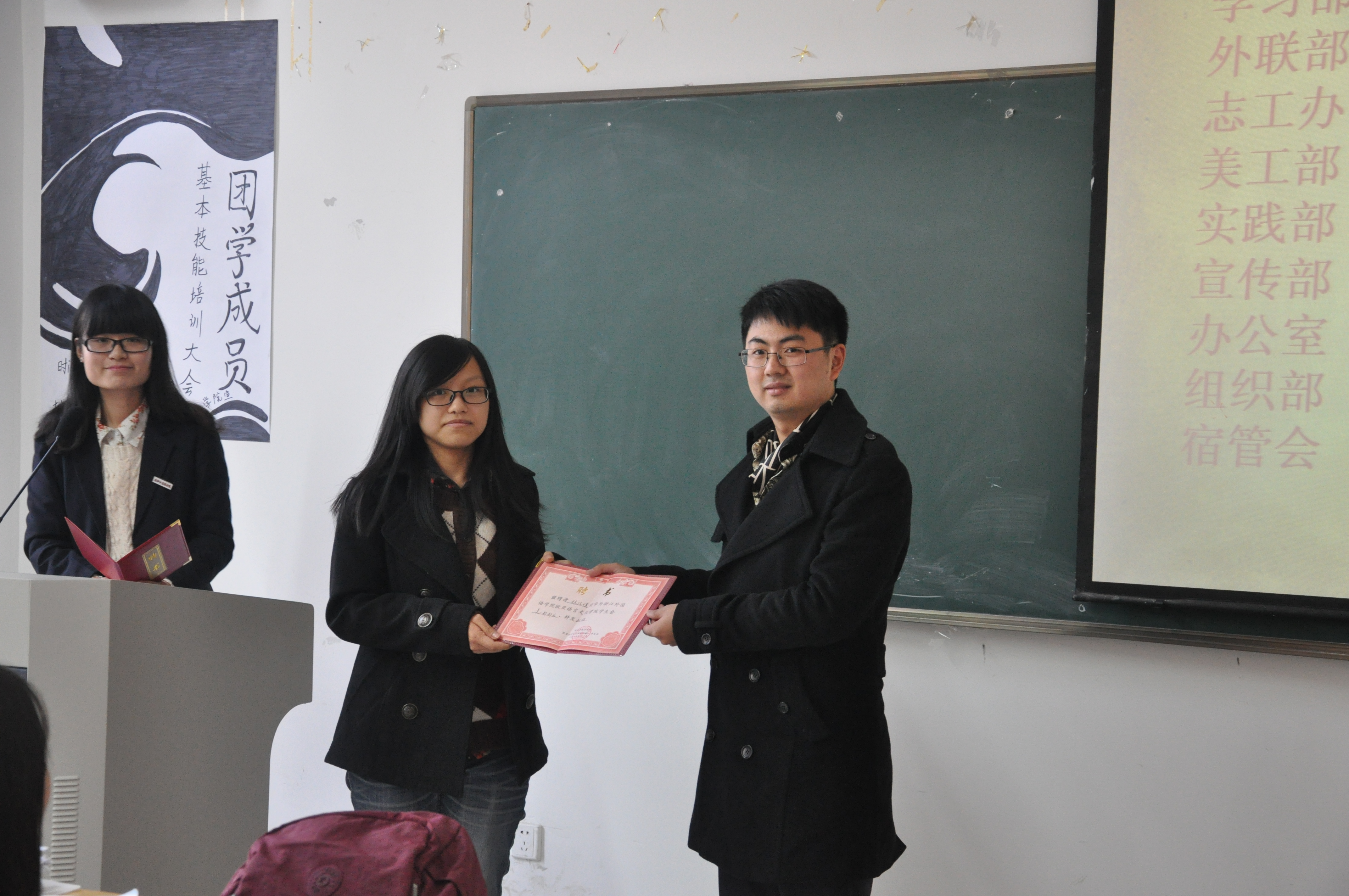 团委负责老师陈和健为学院第二届团学干部颁发证书。之后陈老师宣读了第三届团学干部名单,表明低端影视