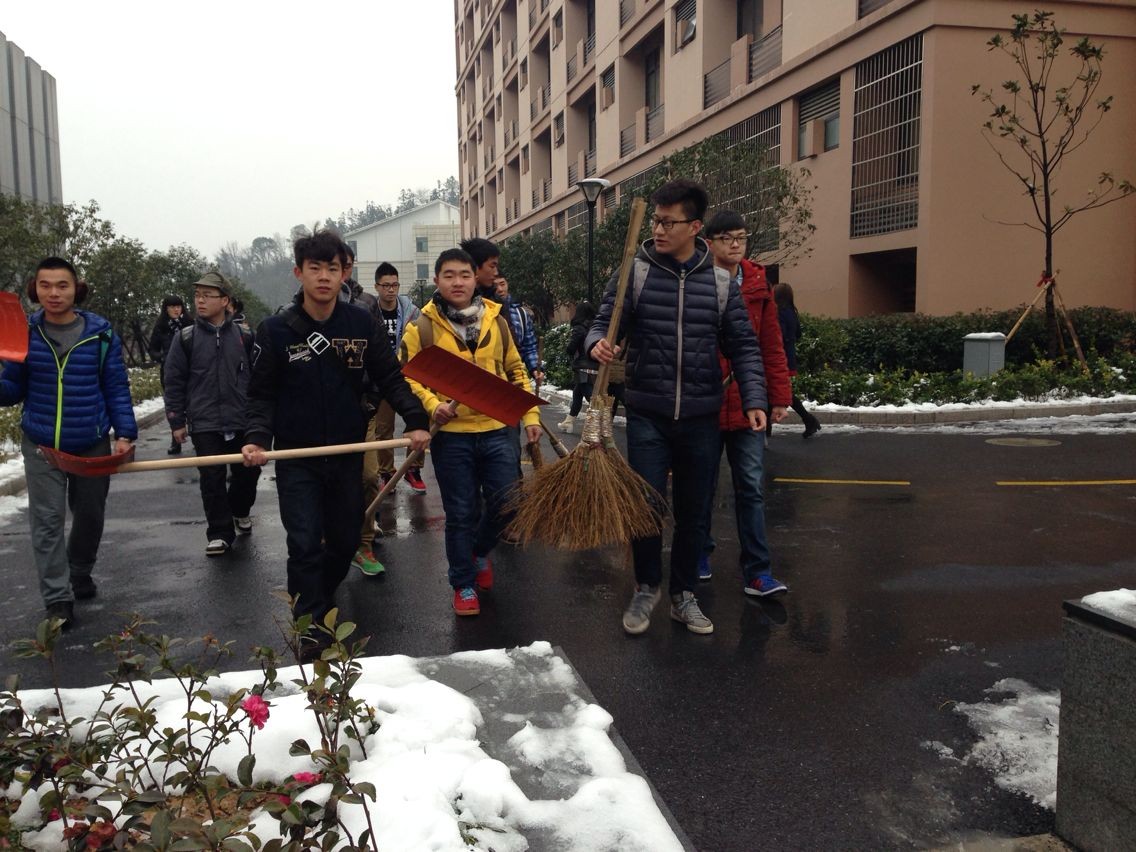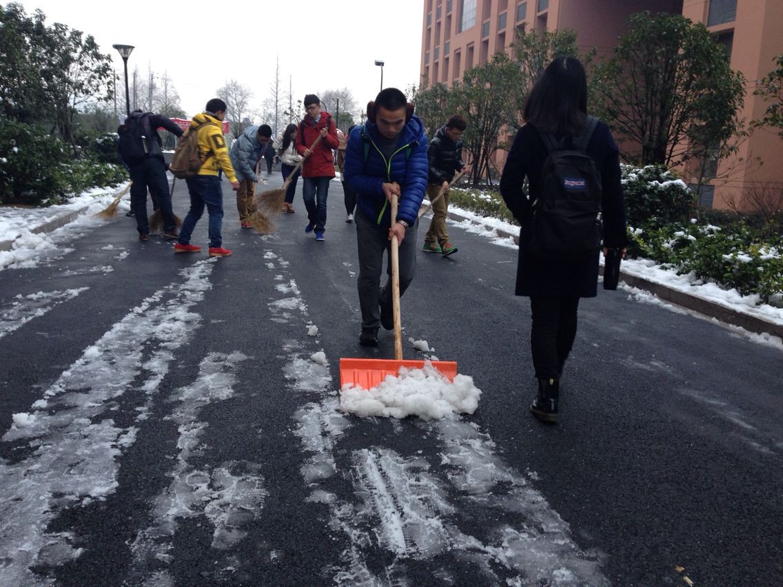 2月19日早,经历过一天一夜大雪的小和山银装素裹。7点整,冒着低温和寒风,由低端影视 团学主要干部、党支部骨干同学组成的扫雪队伍一行十余人在食堂门口集合,对校区主要道路的积雪进行了扫除。参与扫雪活动的同学表现出极高的热情,干得热火朝天。