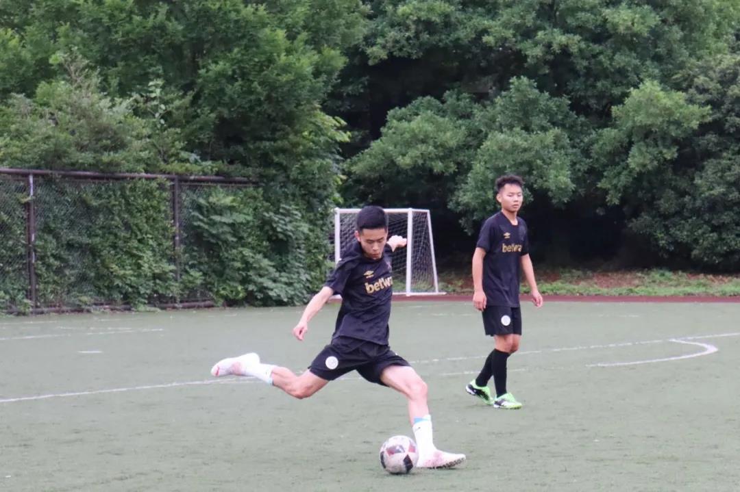 学子并未退缩,在比赛开始之际,17号张志宇完成抢断后小脚度爆射破门,开球直接吊向禁区,拿下一局胜利。