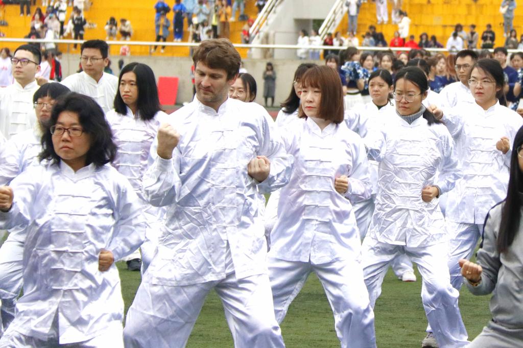 开幕式后紧接着进行学生太极拳、教工八段锦、学生健美操比赛。学院太极拳和八段锦队员们动作整齐划一,刚柔结合,一招一式尽显风韵神采。学院健美操队表演更是青春洋溢,舞姿靓丽动感,赢得了场内一阵阵的欢呼和掌声。