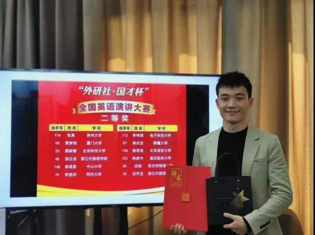 19法语饶云龙同学在浙外大英演讲队指导老师陈果、陈兰英、郭墨池和姜希颖四位老师的精心指导下,荣获全国二等奖、省一等奖。