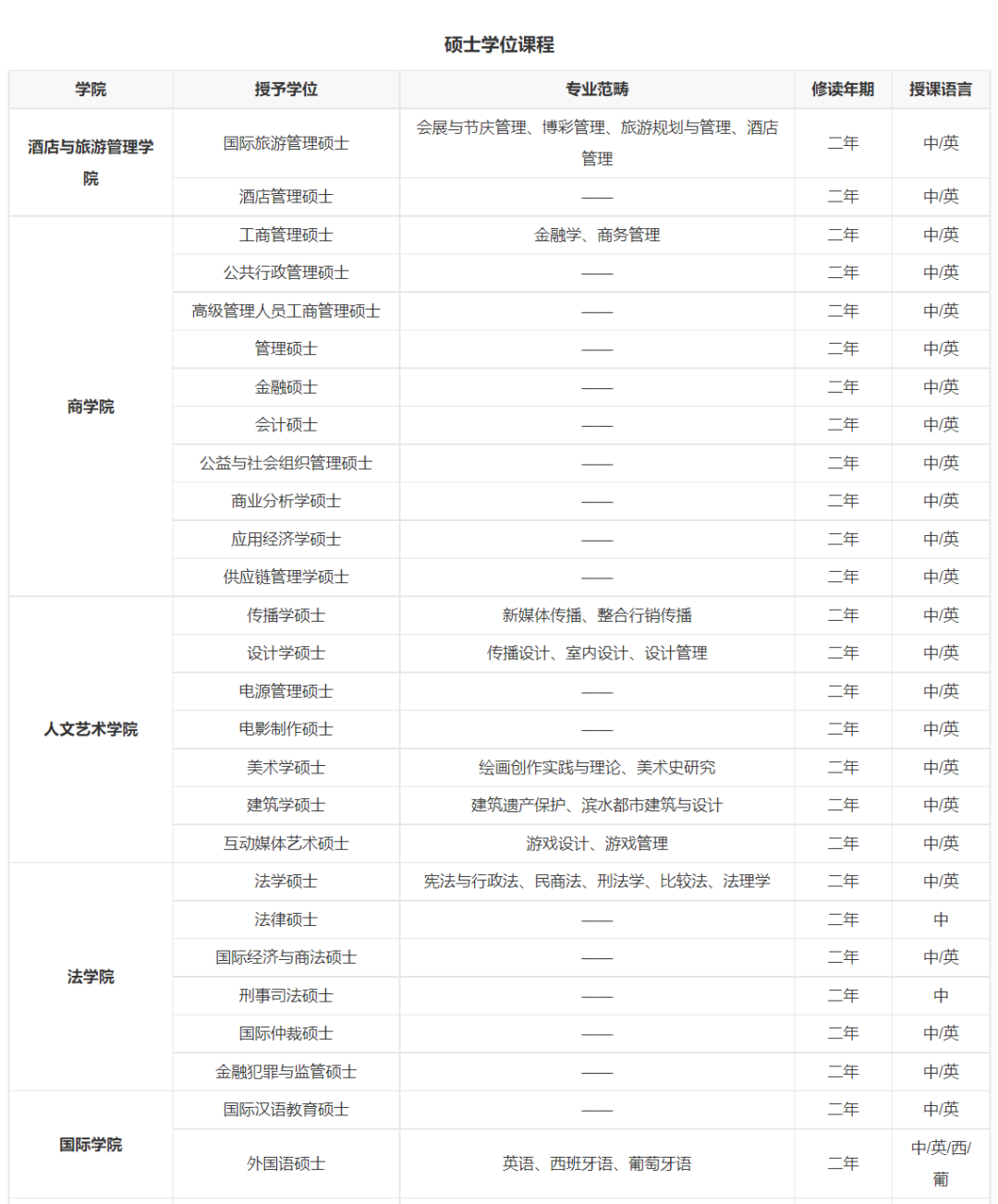 澳门科技大学西班牙语专业研究生