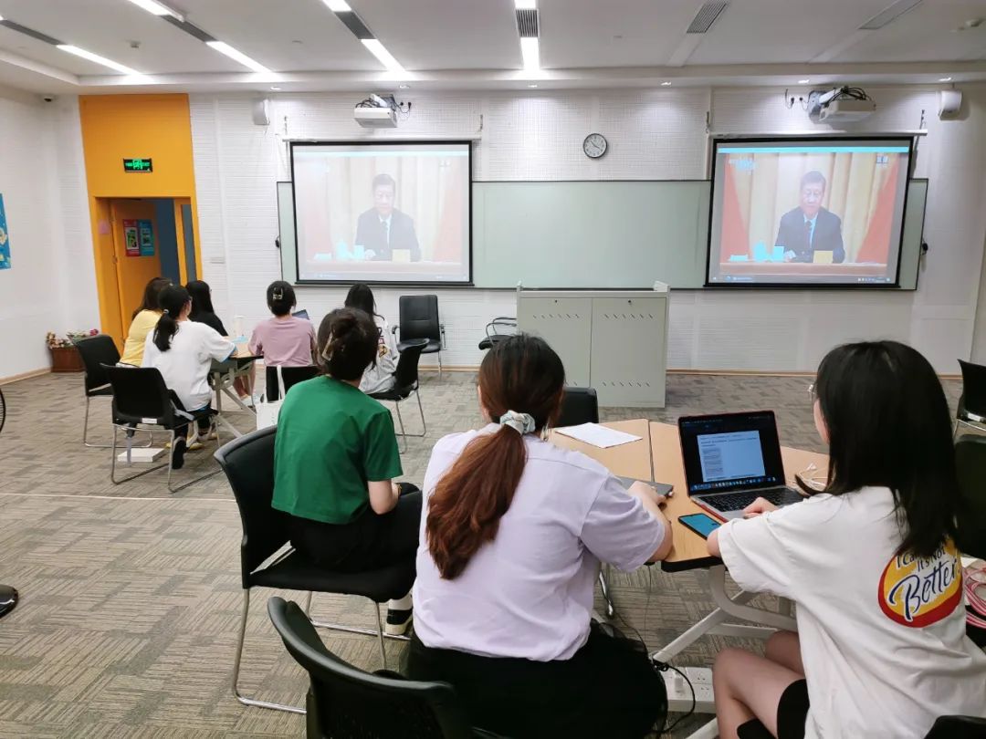 团委及时转载了直播、回放链接和讲话全文,并邀请学院党总支副书记共同观看,组织海内外学生学习收看,撰写学习心得,确保学习取得实效。