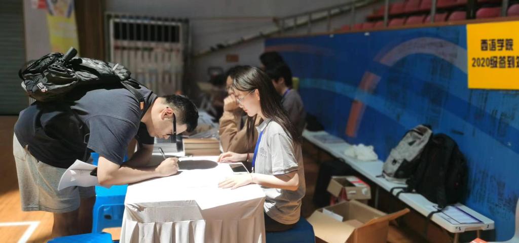 在入口处设置了签到处,并邀请已经确定工作的大四毕业生在现场为学弟学妹们提供就业指导服务。