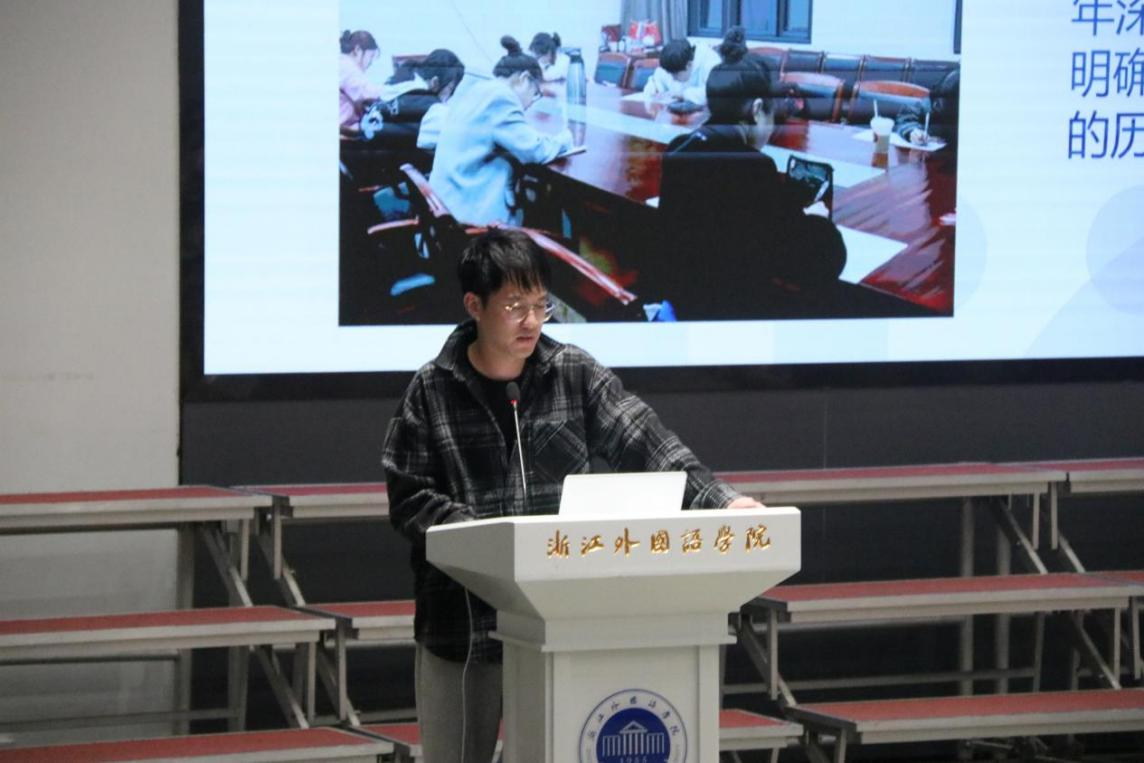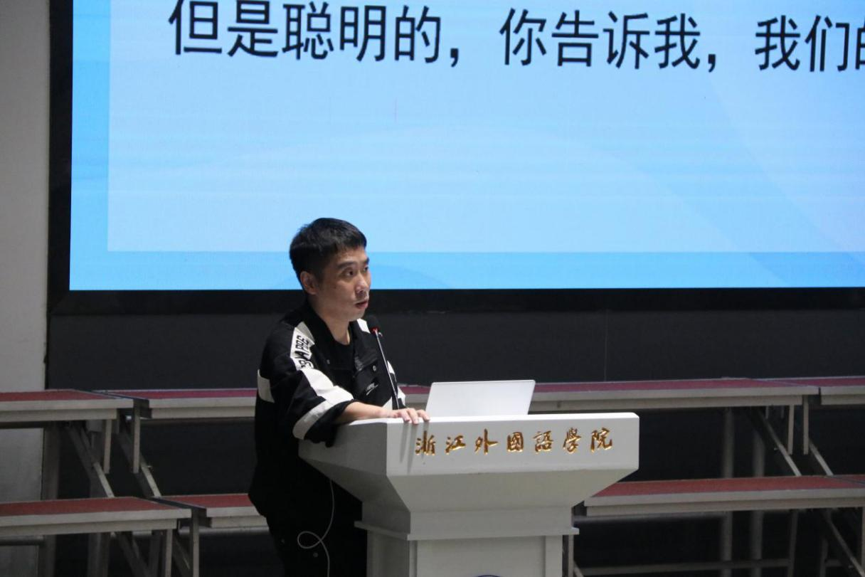 通过朱自清散文与中国时政术语两个类型的翻译互动,戴书记以个人在英语与德语的相关学习经验为例,做了四部分的学习心得分享。就外语的文科属性和知识点分散的特点,戴书记提出了应善用笔记本与词典的建议,强调了跟上老师授课节奏的重要性,并对课前预习、课中听讲和课后复习三个环节提出了针对性的指导,如对比教材整理知识点,善于提问、勇于提问,做练习题复习等有效建议。